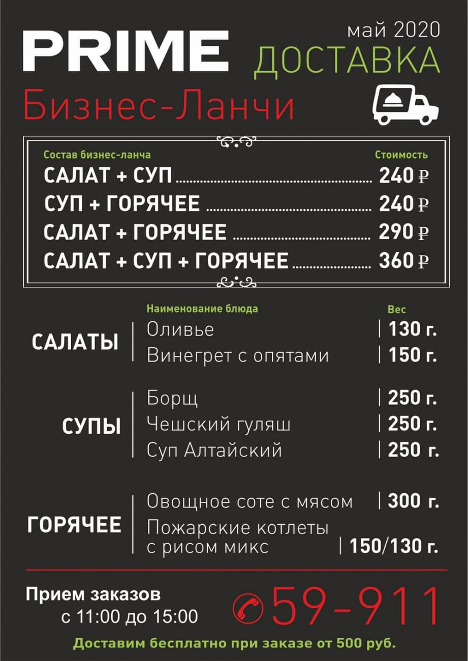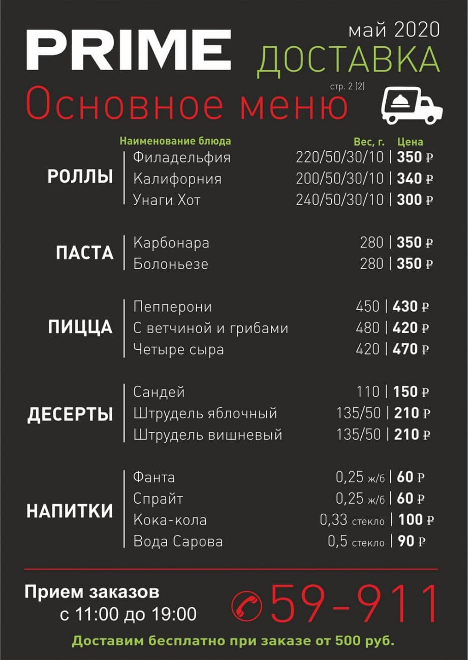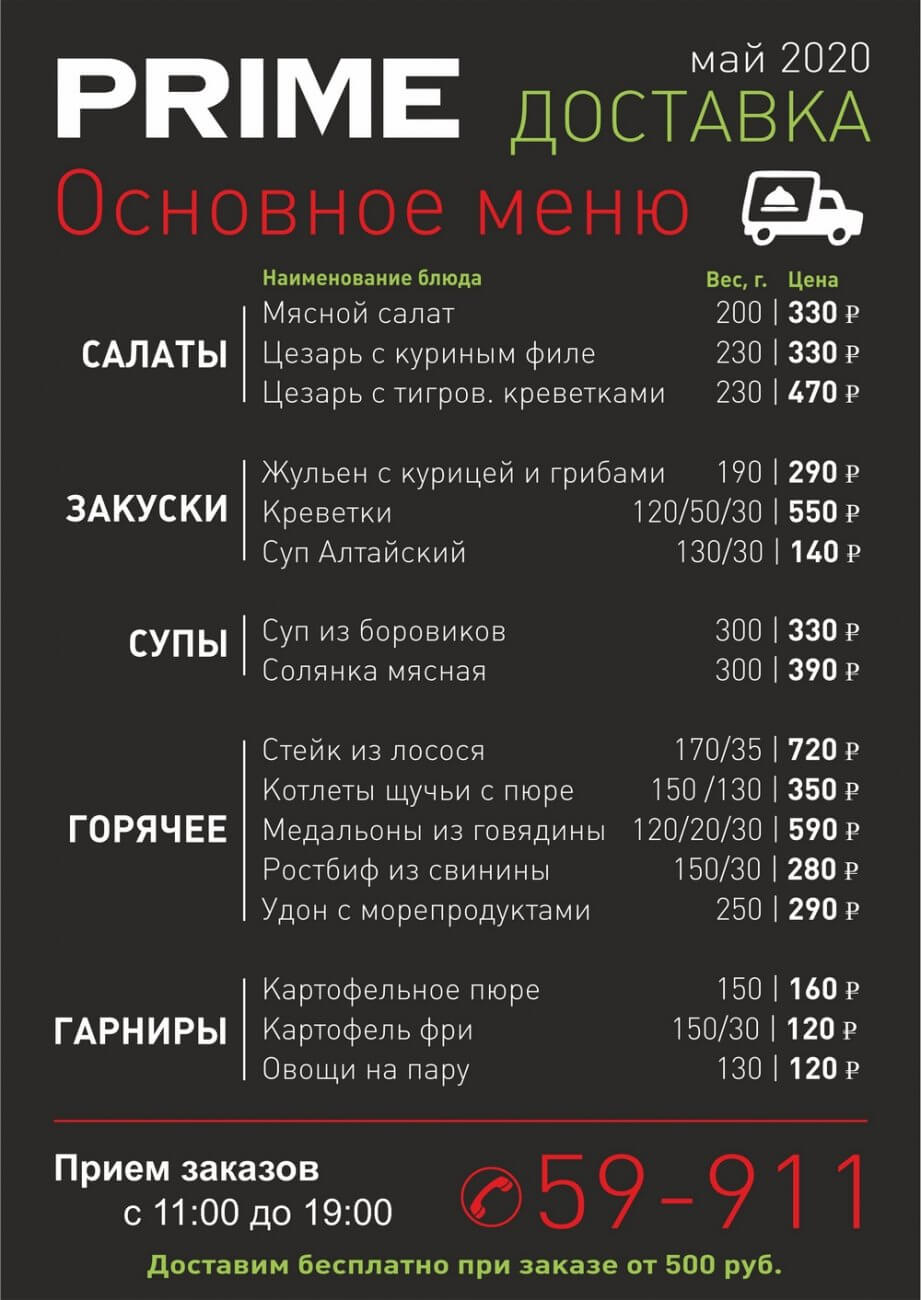 Ресторан PRIME открыл доставку и привезет ваши любимые блюда в любую точку города.