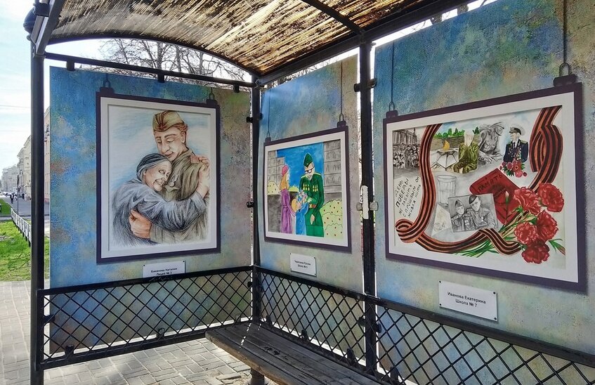 Тематические снимки появились на павильонах около поликлиники № 2. Остановки около Дворца детского творчества украсили детские рисунки, которые отобрали на конкурсе «Память поколений».