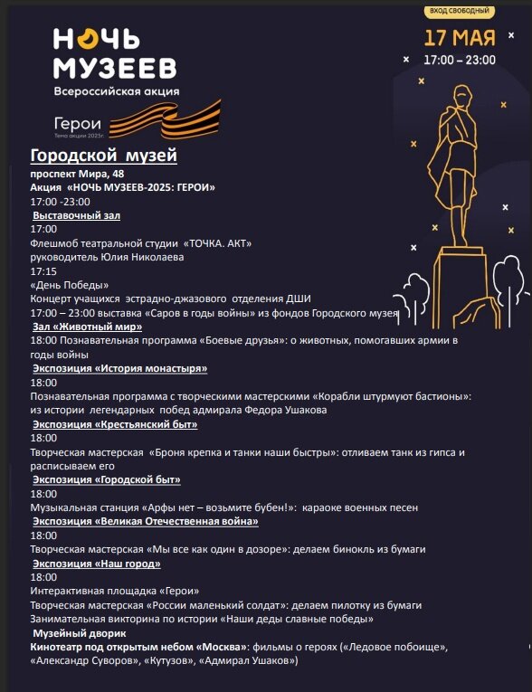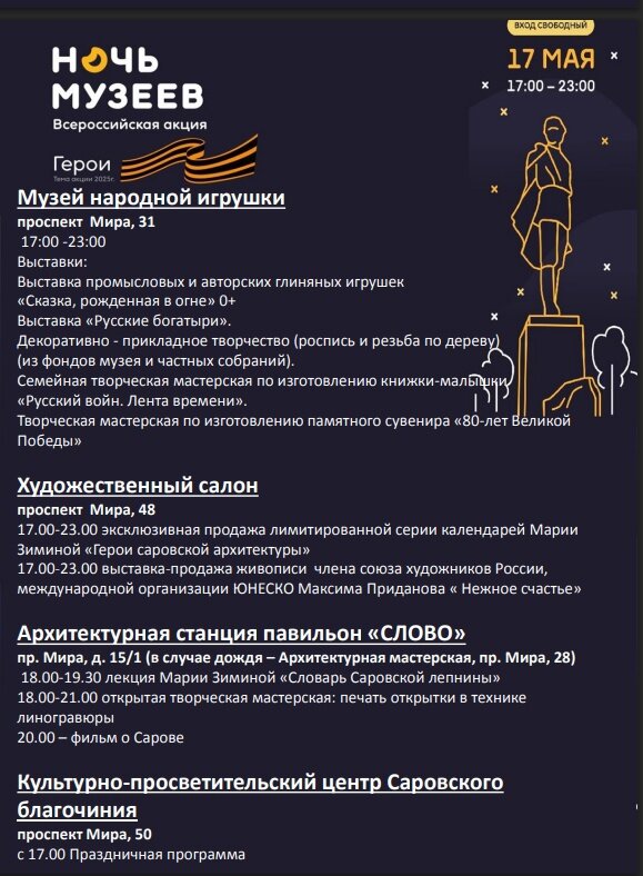 Всероссийская акция «Ночь музеев» пройдет в Сарове в субботу, 17 мая, с 17 до 23 часов.