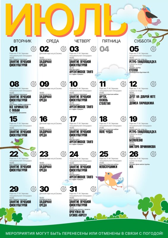 Мероприятия могут быть отменены или перенесены из-за погодных условий.