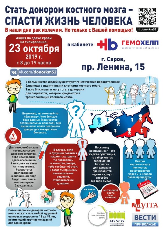 В среду, 23 октября, Фонд «Нижегородский онкологический научный центр» проводит девятую акцию по сдаче крови на типирование для пополнения Российского регистра потенциальных доноров костного мозга.