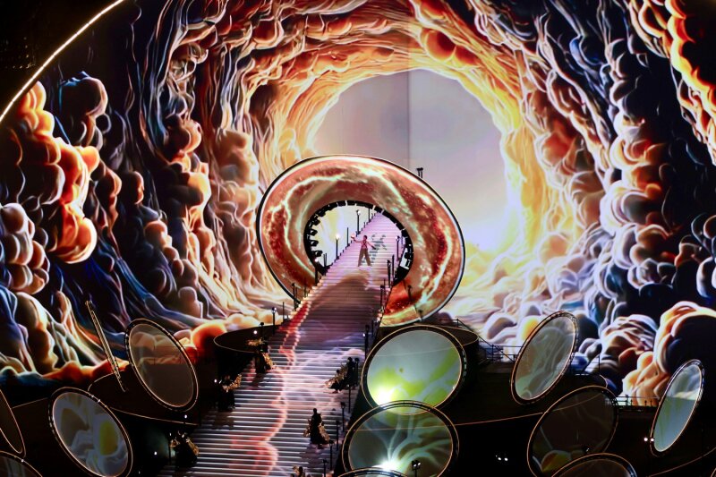 Шоу создавалось с октября прошлого года, объединив усилия более тысячи специалистов. Декорационный комплекс разработан как метафора рождения Вселенной и рассчитан на 180-градусный обзор, что позволяет каждому зрителю быть частью события. Общая площадь проекций составила свыше 4,7 кв. км. Почти вся музыка и тексты песен написаны специально для мероприятия.