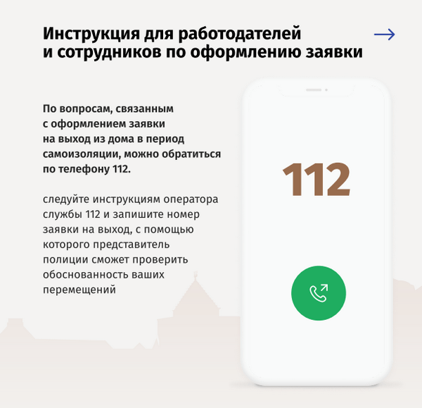 Не имеющие смартфонов, могут подать заявку на перемещение вне места жительства (пребывания) по единому номеру 112. Соответствующие обновленные приложения станут доступны в GooglePlay и AppStore в срок до 4 апреля включительно.