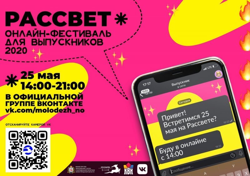Следом, в 14:00, стартует онлайн-фестиваль для выпускников школ Нижегородской области - «Рассвет». Организаторы знают, как хочется сейчас школьникам лично встречаться со своими друзьями, вместе гулять после уроков и проводить свободное время беззаботно. Команда ВК «Образование_52» готова провожать последние учебные дни вместе с ребятами, наряжаться, петь песни и танцевать. Фестиваль продлится в группе ВКонтакте https://vk.com/molodezh_no! до 21:00.