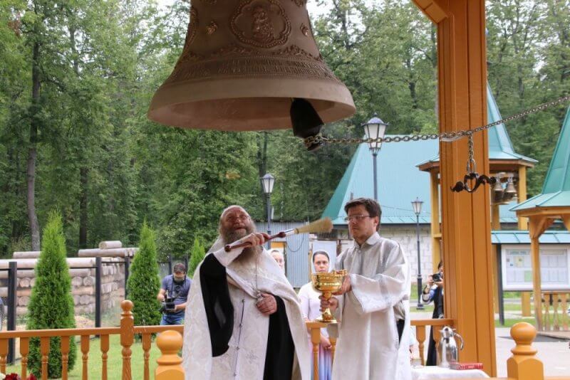 Церемонию освящения памятного колокола, отлитого на средства сотрудников ядерного центра, совершили протоиереи Лев Юшков и Владимир Кузнецов: https://sarov24.ru/obschestvo/11675-kolokol-v-pamjat-o-pogibshih-ispytateljah-vniijef-ustanovili-v-sarove.html
