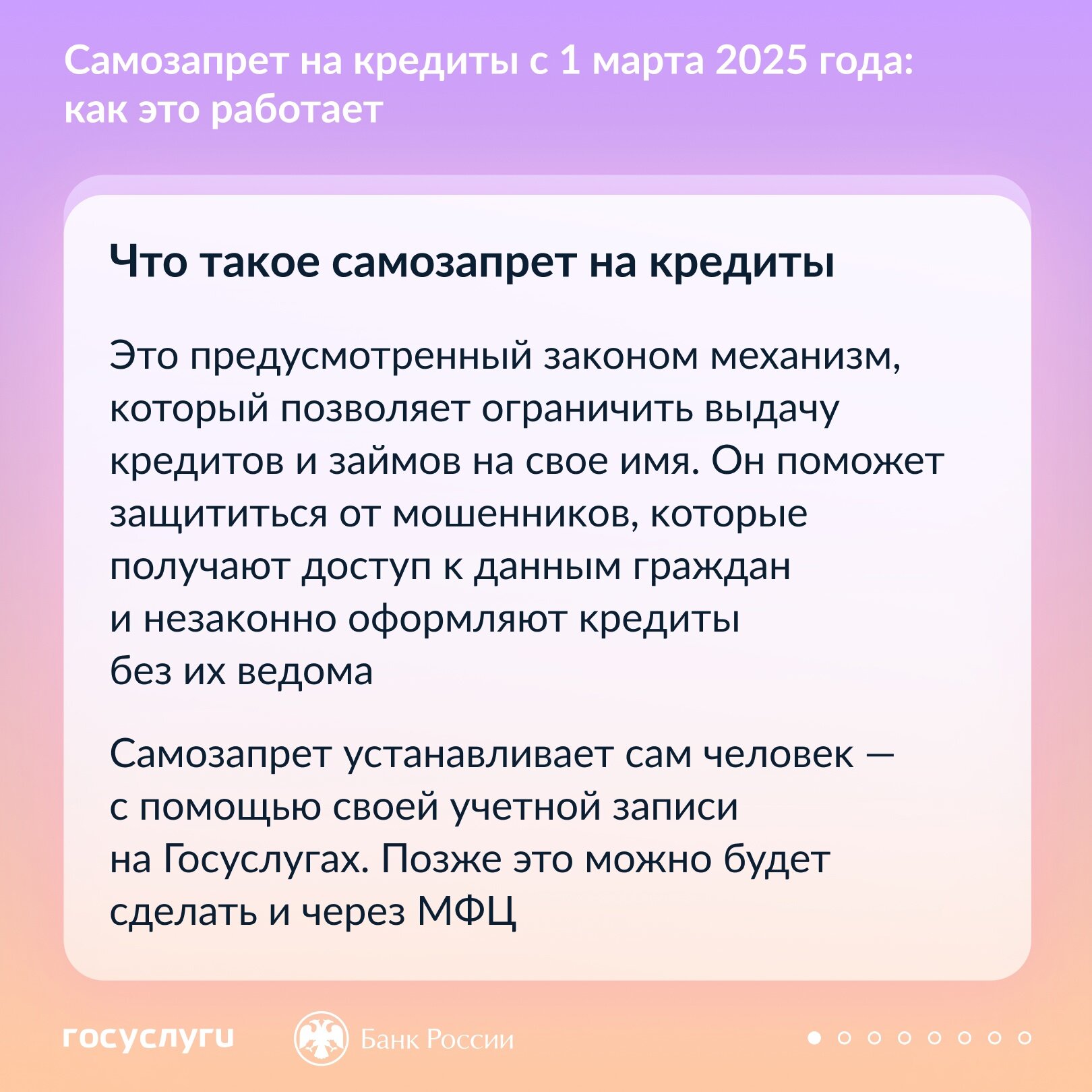Больше информации о самозапрете на сайте Центрального Банка России: https://vk.cc/cDuQB5