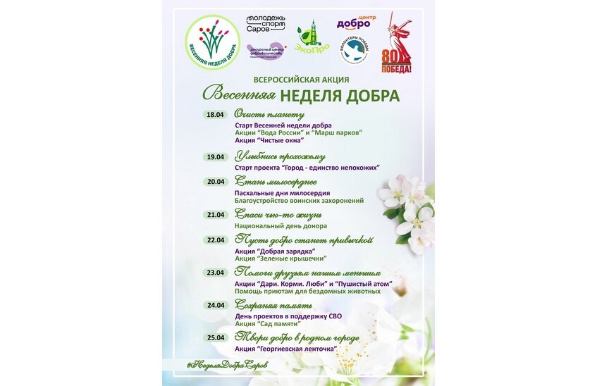 С 18 по 25 апреля в Сарове состоится Всероссийская акция «Весенняя неделя добра».