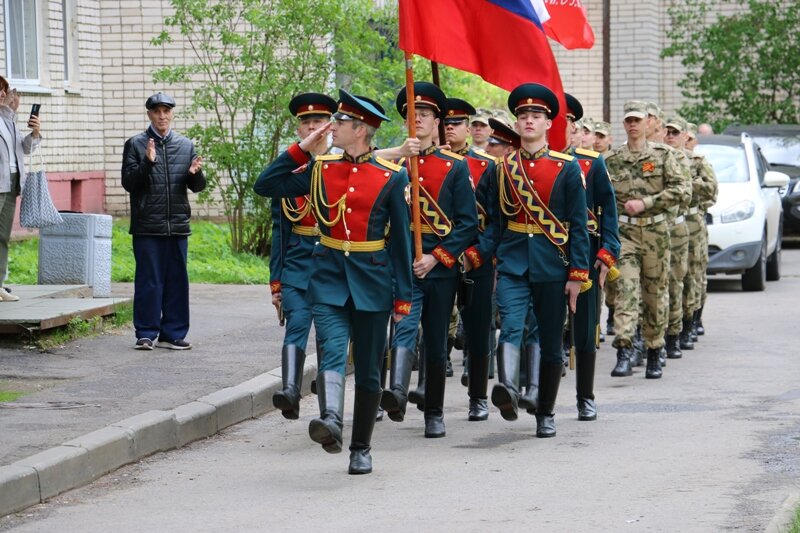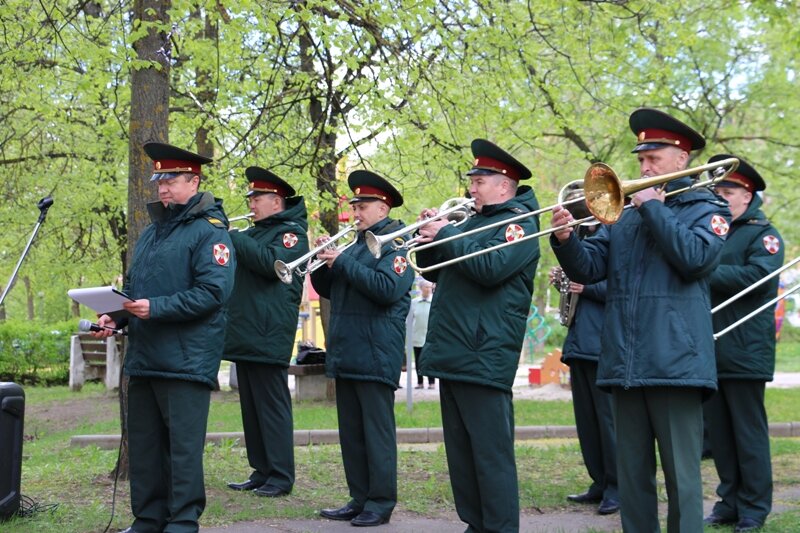 Саровская дивизия организовала небольшой праздник 6 мая на улице Советской. Для ветерана Зинаиды Михайловны Курбаковой играл оркестр, вокалисты пели военные песни.