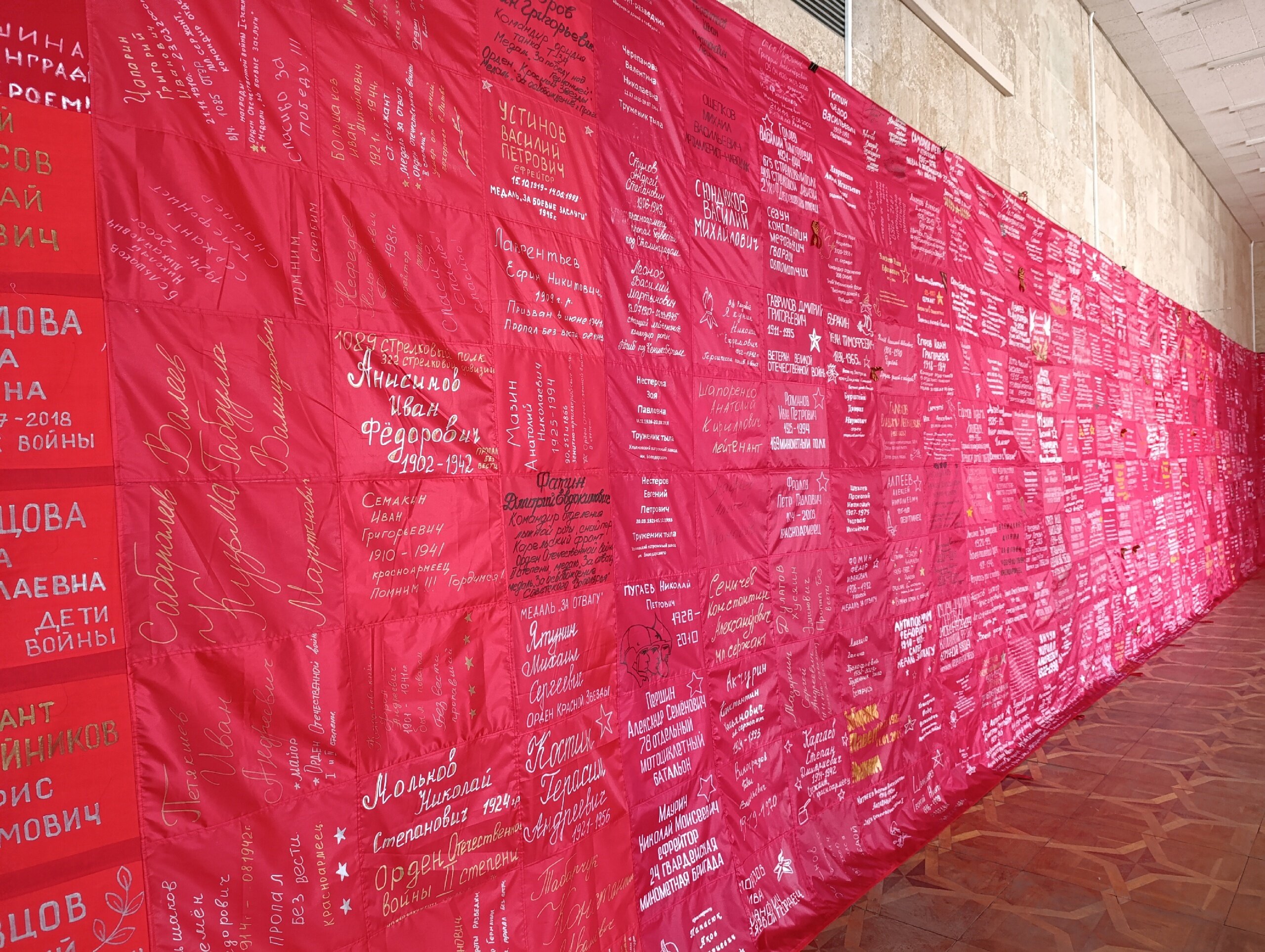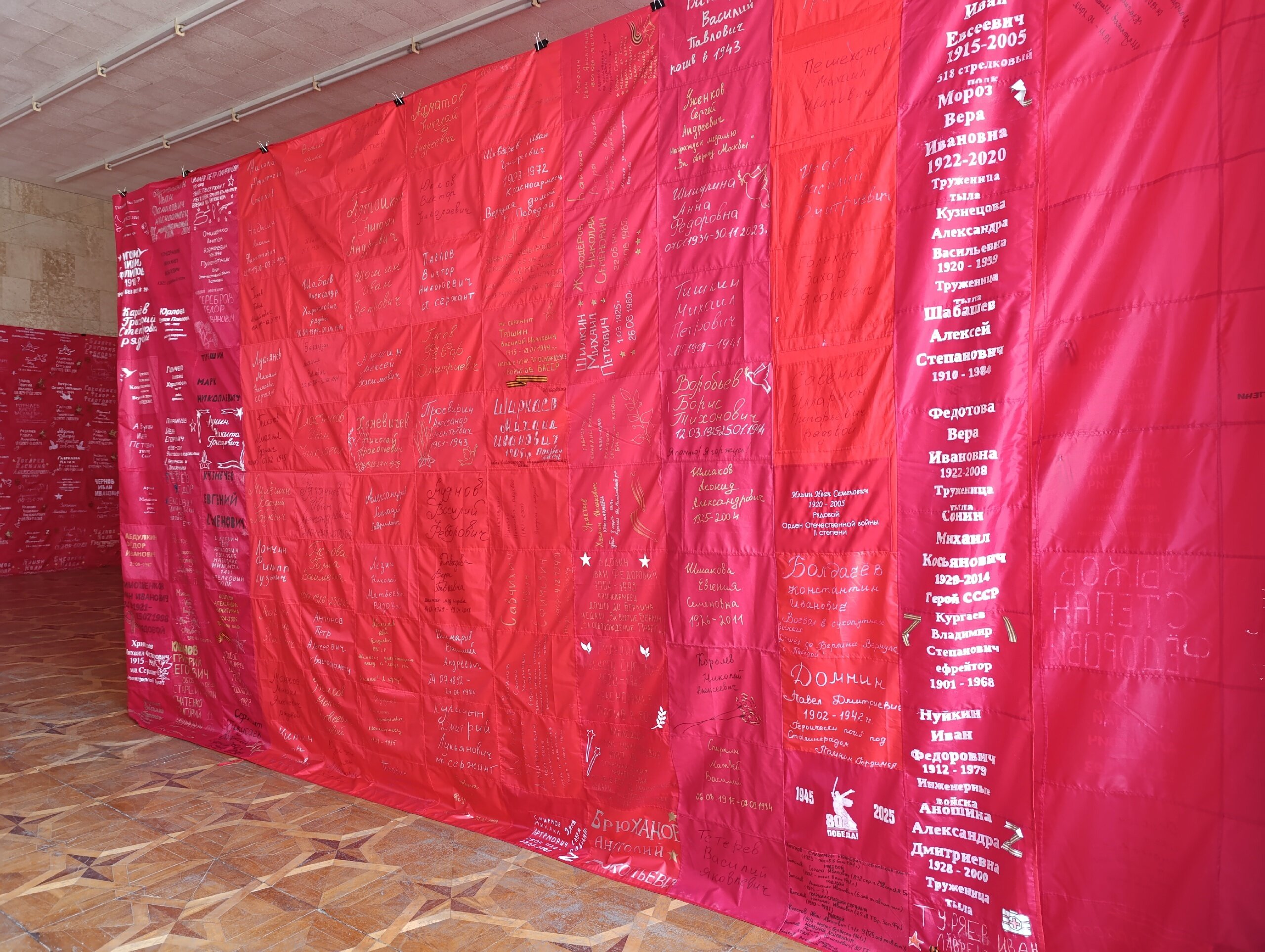 Большое красное полотно с именами родственников, которые участвовали в Великой Отечественной войне, создали юные саровчане в школах города по инициативе саровской дивизии.