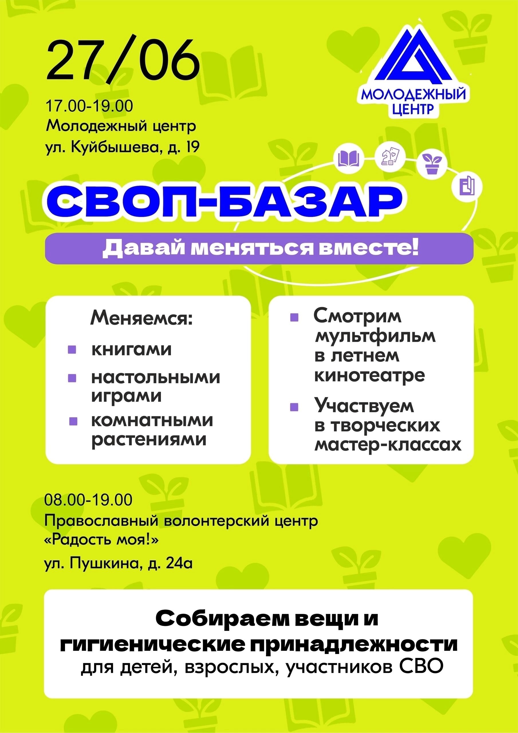 В пятницу, 27 июня, на уличной площадке Молодежного центра пройдет первый своп-базар.