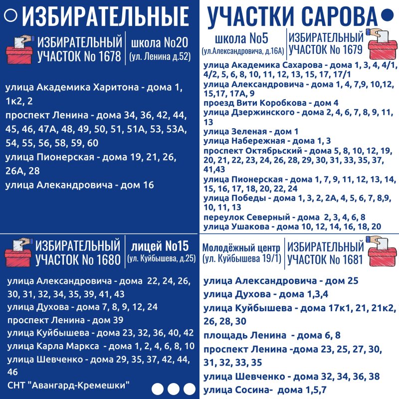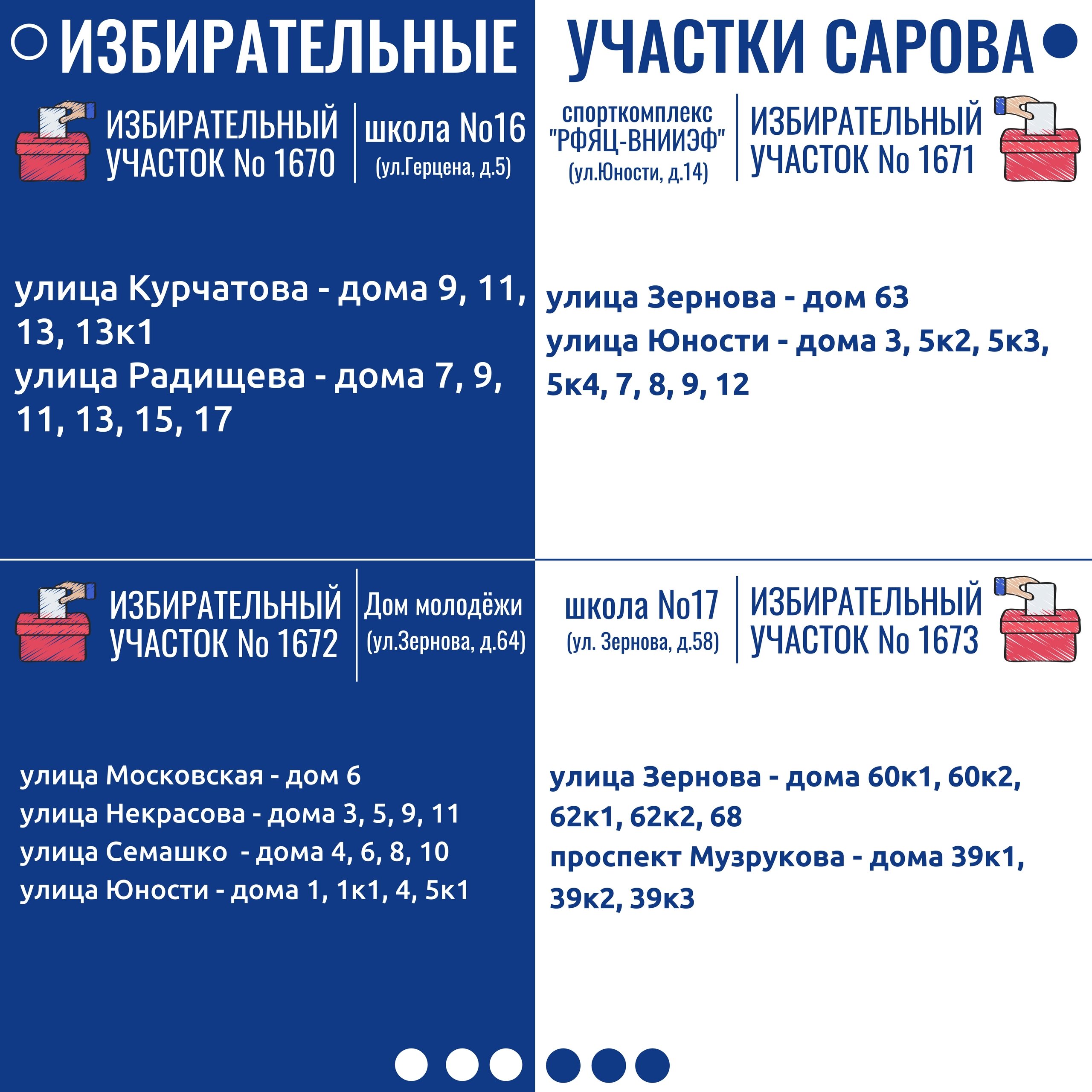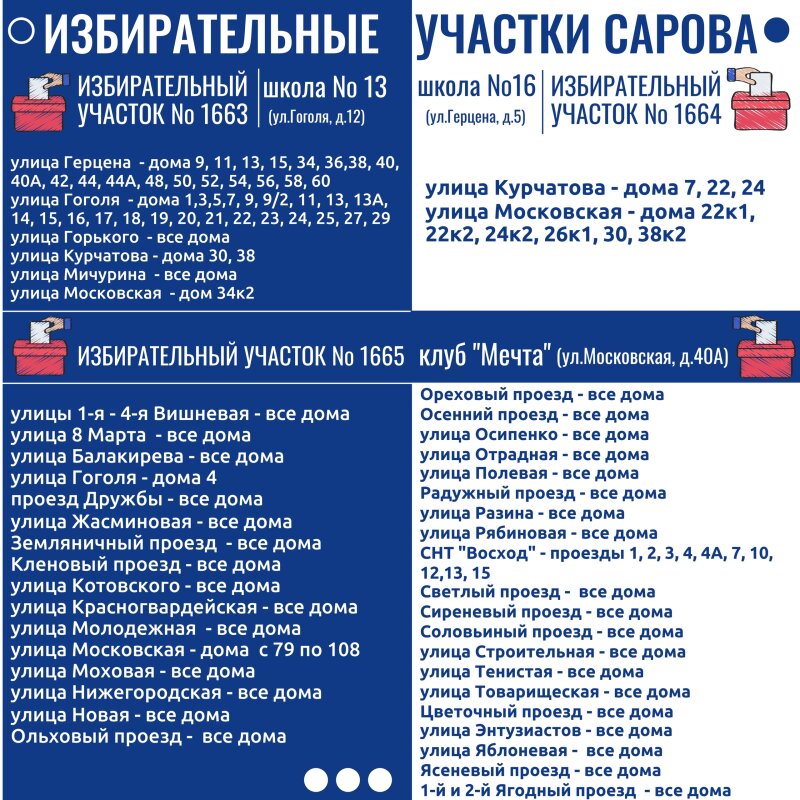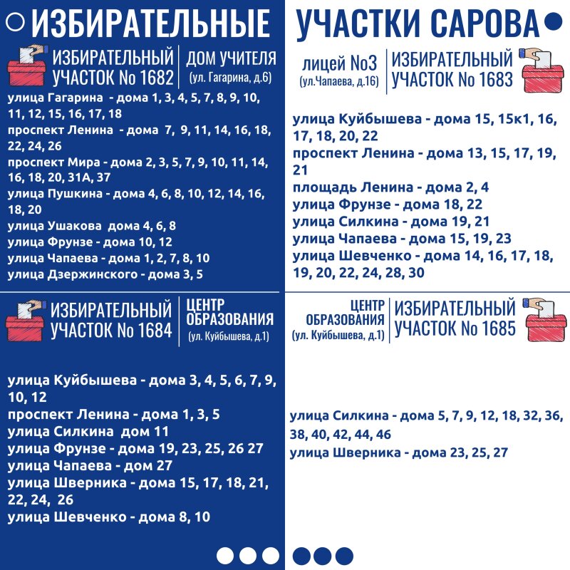 Администрация города в картинках напоминает, где находятся избирательные участки саровчан.