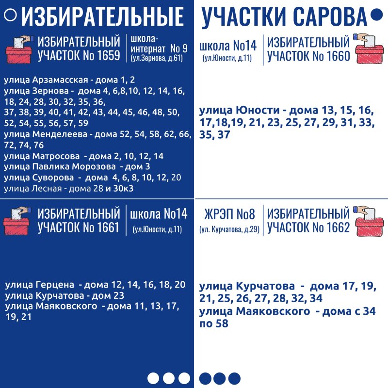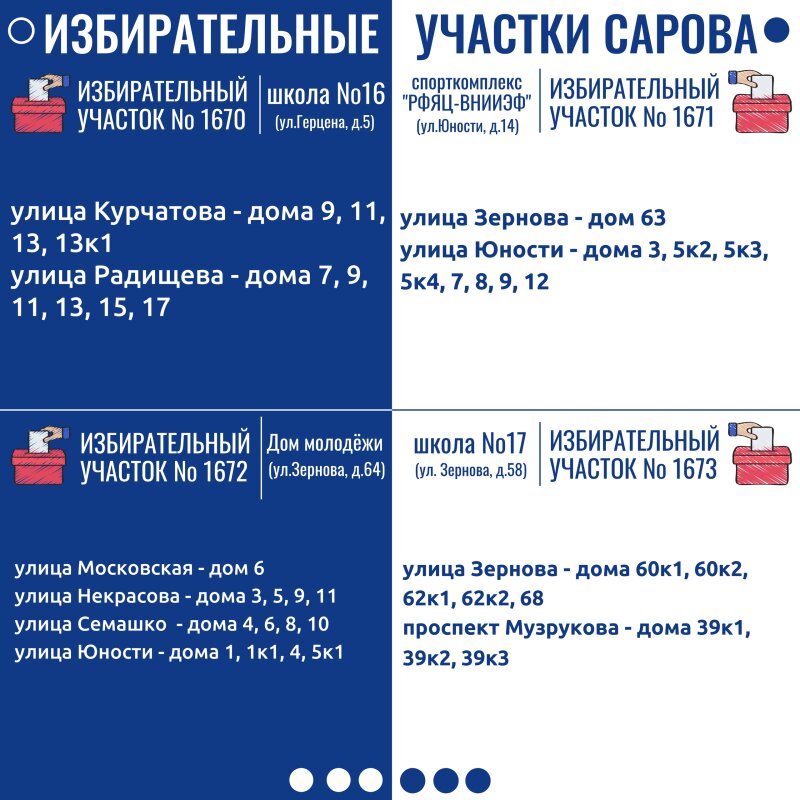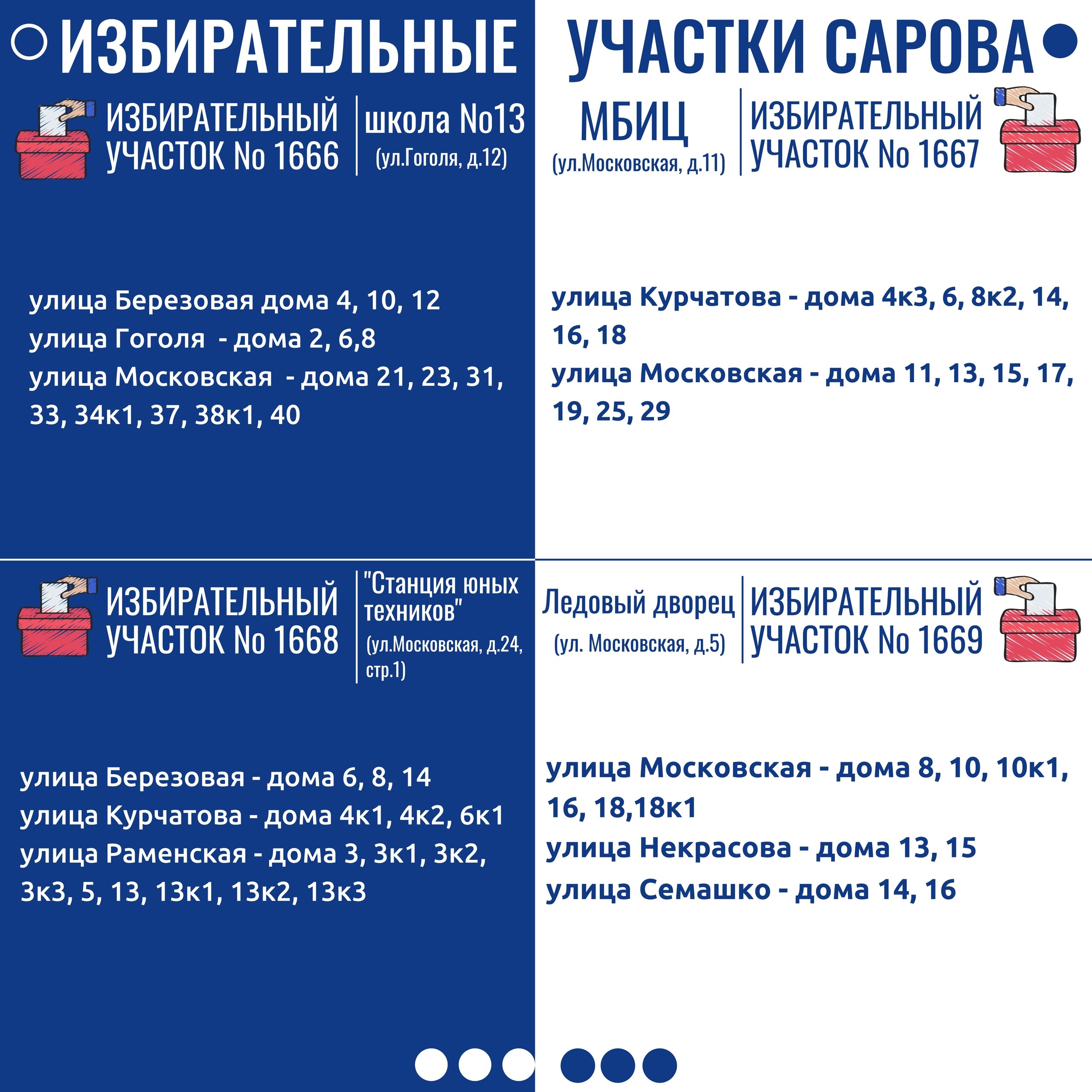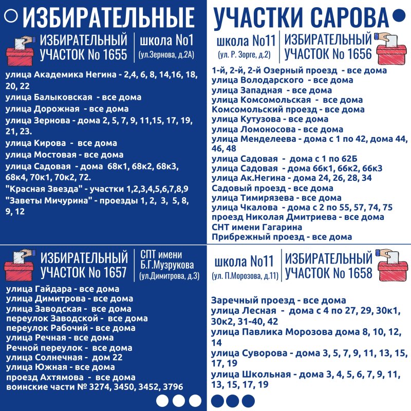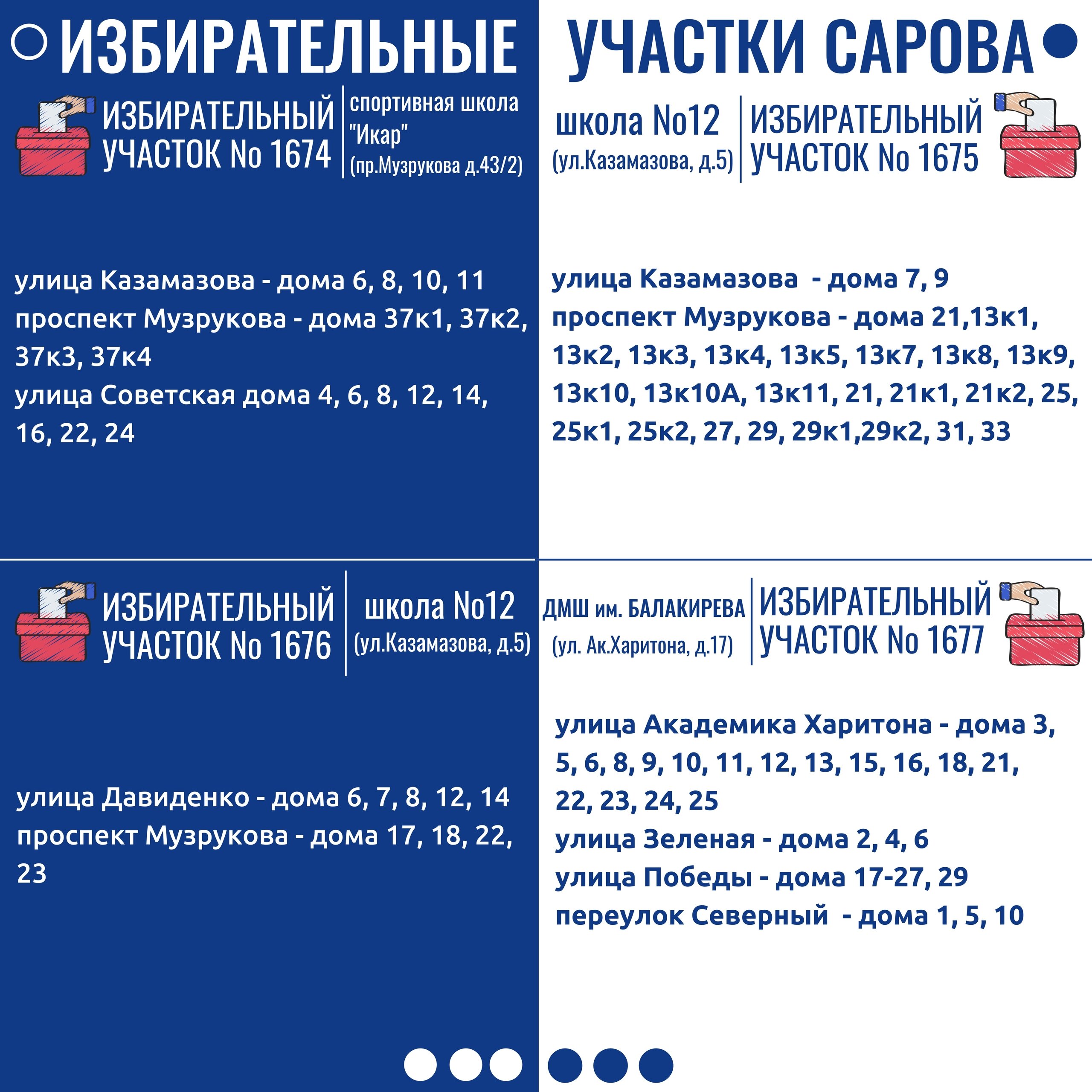 Администрация города в картинках напоминает, где находятся избирательные участки саровчан.