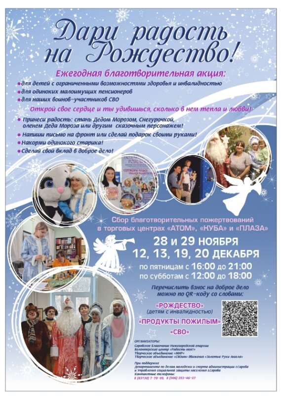 Горожане могут принять участие в акции несколькими способами: внести свой вклад наличными во время сбора, сделать безналичное перечисление по куар-коду с указанием назначения платежа или стать волонтером и лично принять участие в сборах, подготовке подарков, поздравлениях, проведении праздника.
