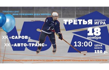 В 13:00 состоится матч между ХК «Саров» и ХК «Авто-транс».