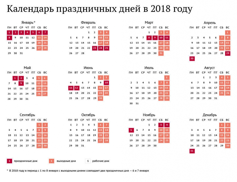 Выходные дни шестое и седьмое января (суббота и воскресенье), совпавшие с праздничными днями, перенесут на девятое марта и второе мая. Кроме того, день отдыха в субботу будет трижды перенесен на понедельник: с 28 апреля, 9 июня и 29 декабря — на 30 апреля, 11 июня и 31 декабря соответственно.