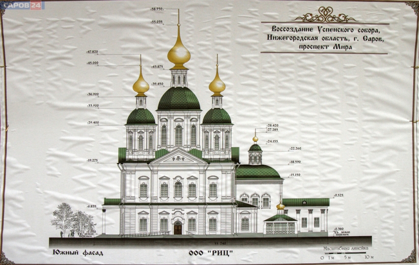 Таким образом, в 2018 году в Сарове достроят сразу два новых храма: кроме Успенского собора на монастырской площади откроется и храм в честь святых Царственных страстотерпцев на улице Менделеева. Напомним, 1 ноября митрополит Нижегородский и Арзамасский Георгий провел чин освящения колоколов.После восстановления Успенского собора планируется воссоздание церкви Пресвятой Богородицы, Живоносного Её Источника. Она расположится между Успенским Собором и колокольней.