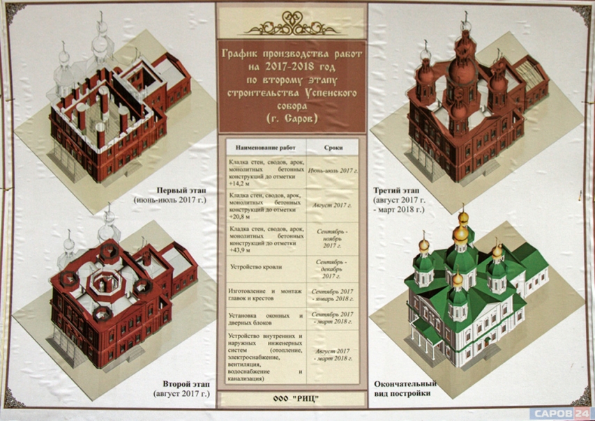 Посетил врио губернатора и строительную площадку Свято-Успенской Саровской пустыни. Глебу Никитину наглядно показали, как планируются проводить восстановительные работы. Как следует из материалов, представленных руководителю области, уже в ноябре завершится кладка стен, сводов, арок, монолитных бетонных конструкций до отметки +43,9 метров. В декабре закончат устройство кровли, в январе 2018 года изготовят и смонтируют главки и кресты, до марта 2018 года - оконные и дверные блоки. Завершающий этап строительства пройдет в марте 2018 года. К этому сроку сделают внутренние и наружные инженерные системы: отопление, электроснабжение, вентиляцию, водоснабжение, канализацию.