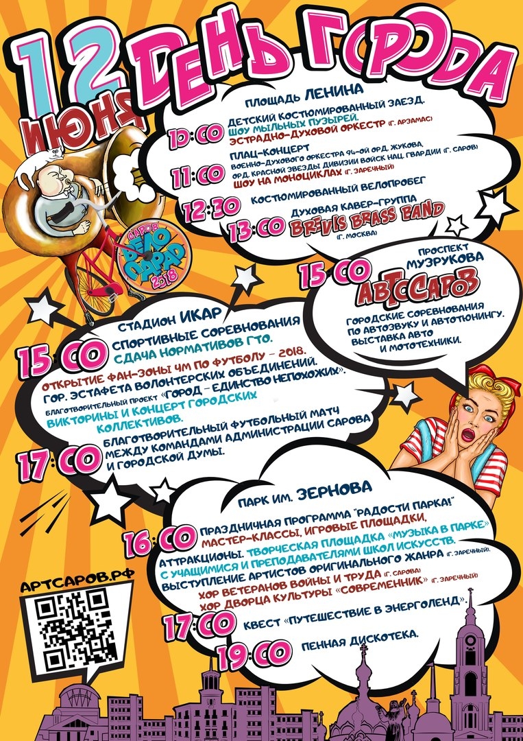 Департамент культуры и искусства подготовил подробную афишу праздничных мероприятий к Дню города и Дню России, которые состоятся в Сарове 12 июня на площади Ленина, в парке культуры и отдыха имени Зернова и на стадионе «Икар».