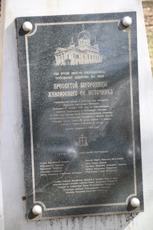 Вокруг храма находятся захоронения настоятелей, благотворителей и наиболее выдающихся монахов монастыря, в том числе преподобного Назария, игумена Валаамского. Сохранившиеся в документах имена захороненных людей приведены на памятном кресте, который установили на месте алтаря церкви в 2003 году перед 100-летием канонизации преподобного Серафима Саровского:
