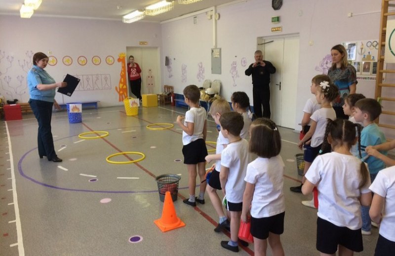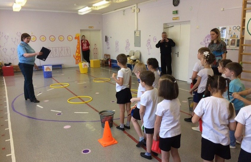 На следующем этапе ребята соревновались в конкурсе «Пожарные, на выезд!»: надевали каску пожарного, брали игрушечный руль и «проезжали» между стойками, спеша на условный пожар.