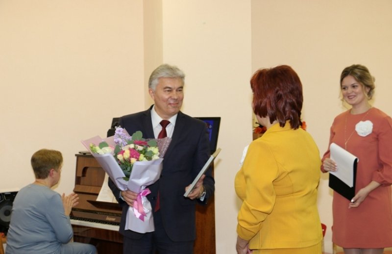 Александр Михайлович пожелал всем здоровья, вдохновения в работе и вручил коллективу дошкольного учреждения благодарственное письмо. Также персонал поздравили директор департамента образования Наталия Володько и депутат городской думы Сергей Смирнов.