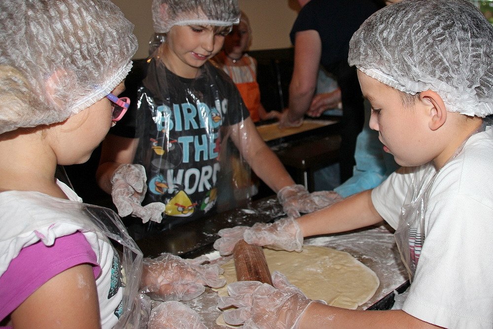 За три часа с Еленой отработали три группы «искорок». Всё делалось на счет раз-два-три. Раз – комок теста превратился в круглую основу. Два – ложкой размазали кетчуп. Три – на грибы аккуратно выложили ветчину и посыпали сыром. И вот уже ребята гордо несут свою заготовку в духовой шкаф. А пока пицца румянится, можно выпить ароматного чая с безе и поговорить о сладостях.