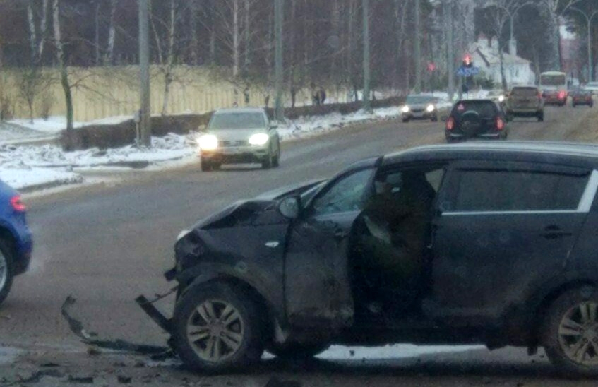 Два автомобиля столкнулись на перекрестке улиц Зернова и Арзамасская. По свидетельству очевидцев, один из участников движения проехал перекресток на запрещающий сигнал светофора.