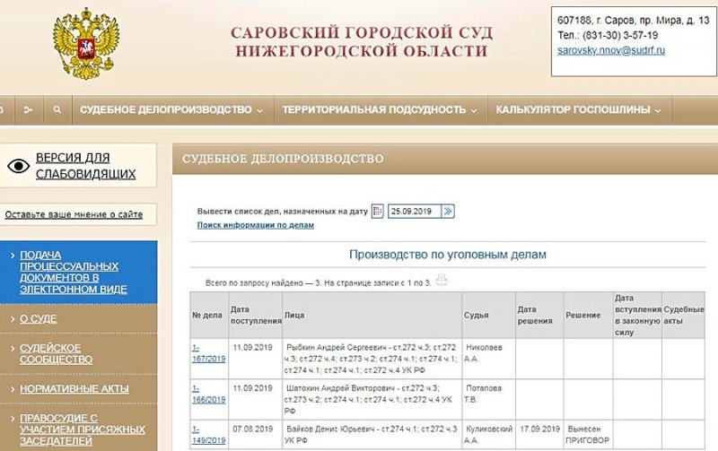 Как рассказала RT пресс-секретарь Саровского городского суда Нижегородской области Светлана Калюта, третий фигурант был оштрафован.