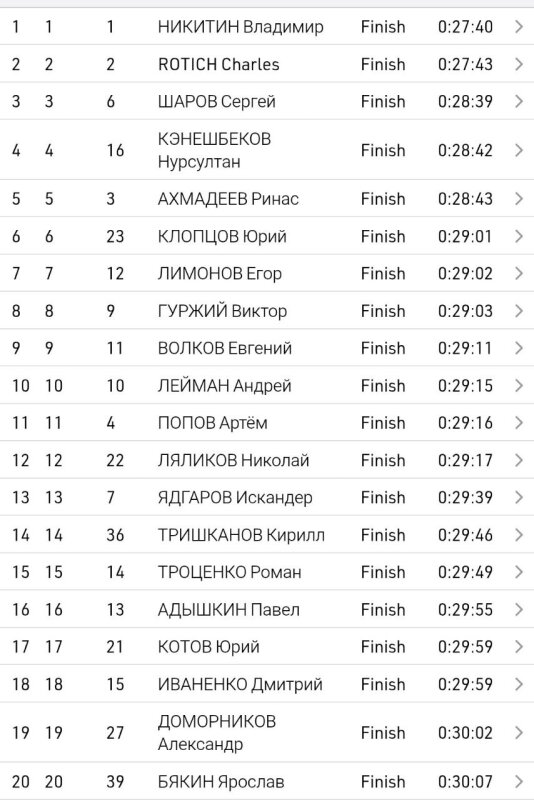 Впереди только спортсмен из Кении и многократный чемпион и рекордсмен страны Владимир Никитин.