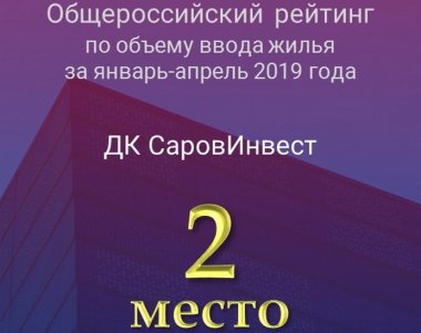 и 2 место в региональном рейтинге Единого реестра застройщиков: https://sarov24.ru/zhkh/8902-sarovinvest-voshel-v-chislo-liderov-v-rejtinge-zastrojschikov.html